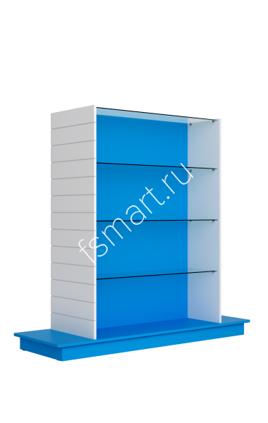 Стеллаж-гондола для аптек, торцы - экономпанель, полки - стекло. Возможно изменение размеров и конфигурации на заказ.