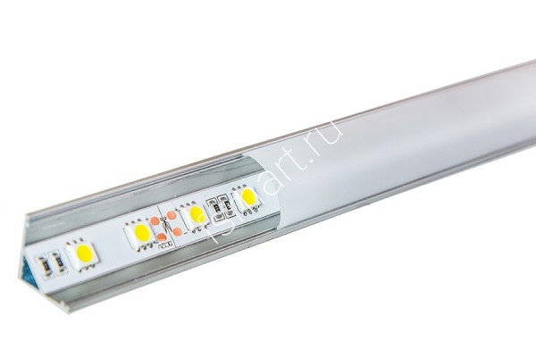 Угловой алюминиевый профиль с рассеивателем для однорядной светодиодной ленты.