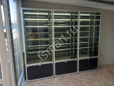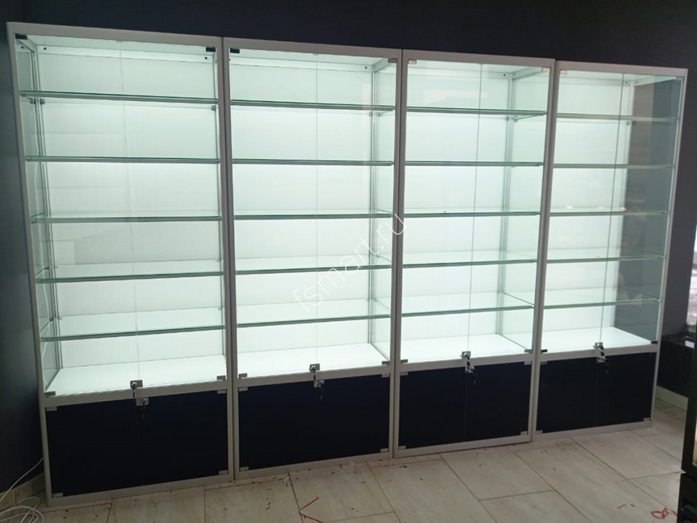 Витрина уже имеет конструктивную подготовку для установки светодиодной подсветки на каждую полку. Осталось выбрать тип ленты и цветовую температуру, подходящую для вашего товара. Каркас витрины сделан из алюминиевого профиля, который, в отличие от ДСП, не подвержен влиянию влаги.