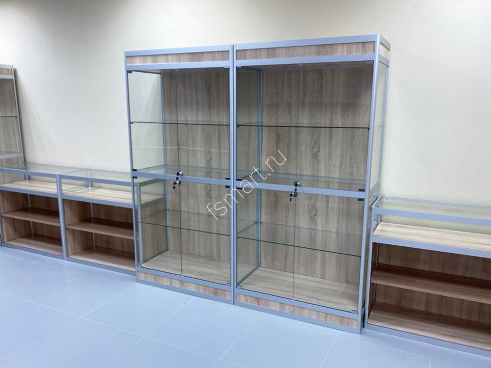 Витрина стеклянная из профиля и ДСП с экономпанелью