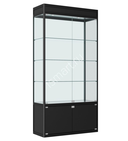 Базовая комплектация включает три стеклянные полки толщиной 6 мм, Расстояние между полками 330 мм, его можно самостоятельно изменять в зависимости от ваших потребностей, переставляя полкодержатели. Дверцы выполнены из 5-миллиметрового стекла, обеспечивающего отличный обзор содержимого.