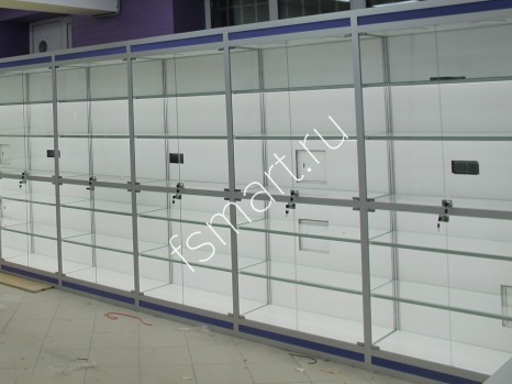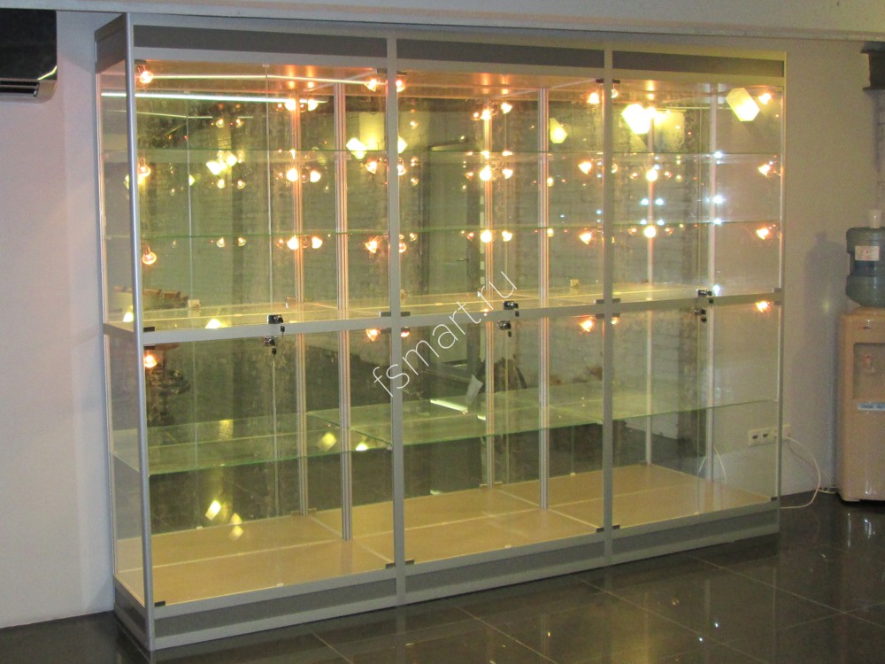 Витрина стеклянная из профиля с подсветкой