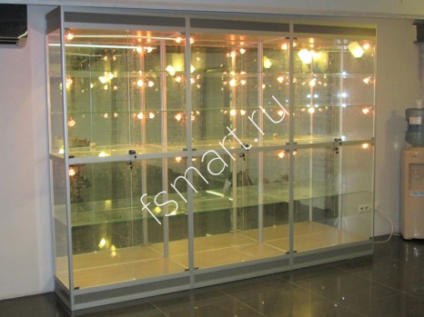 Витрина из профиля с зеркалом и подсветкой
