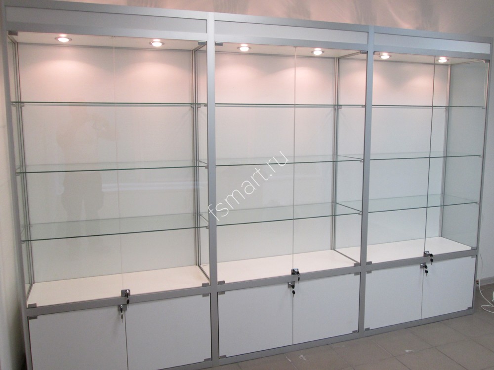 Витрина стеклянная из профиля с подсветкой