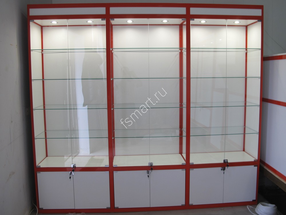 Витрина из профиля с накопителями и зеркалом