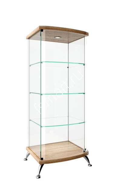 Витрина стеллаж квадратная с гнутым фасадом с подсветкой