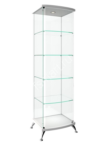 Витрина квадратная стеклянная с гнутым фасадом с подсветкой
