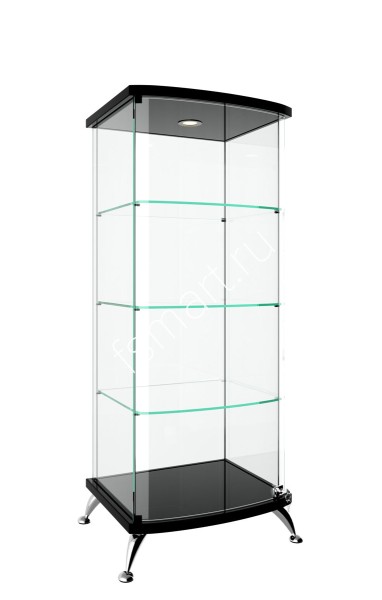 Витрина стеллаж квадратная с гнутым фасадом с подсветкой