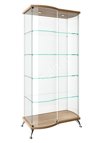 Витрина магазинная с подсветкой с гнутыми дверцей и боковиной