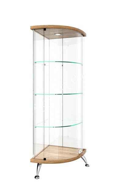 Витрина квадратная с гнутым фасадом с подсветкой низкая