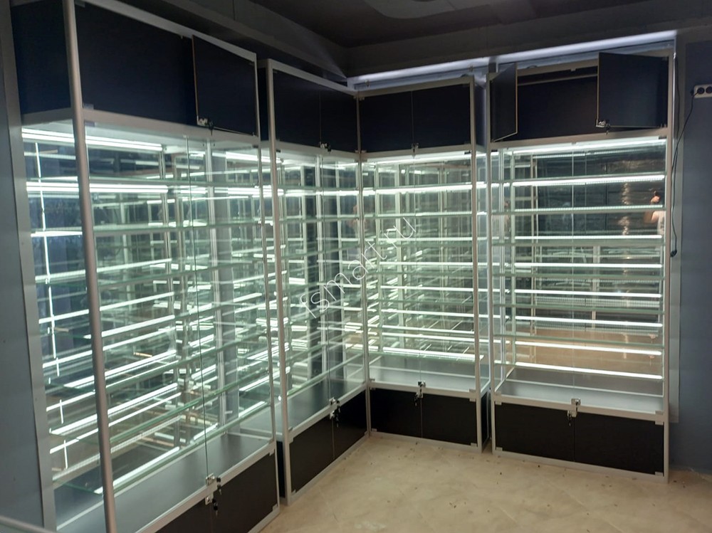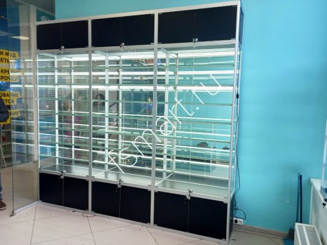 Витрина из алюминиевого профиля, стекла и ЛДСП