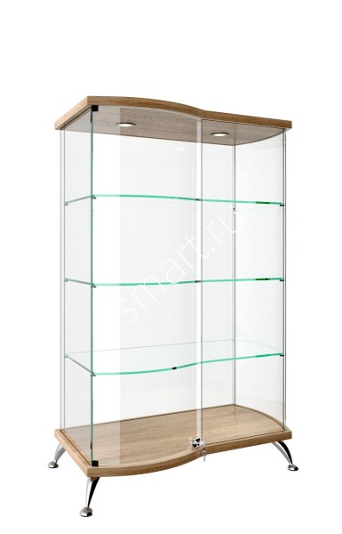 Витрина магазинная с подсветкой с гнутыми дверцей и боковиной