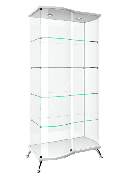 Витрина магазинная с подсветкой с гнутыми дверцей и боковиной