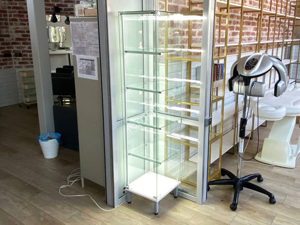 Витрина с подсветкой выставочная узкая