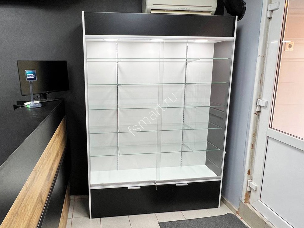 Закрытая витрина со стеклянными полками