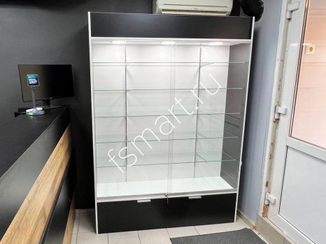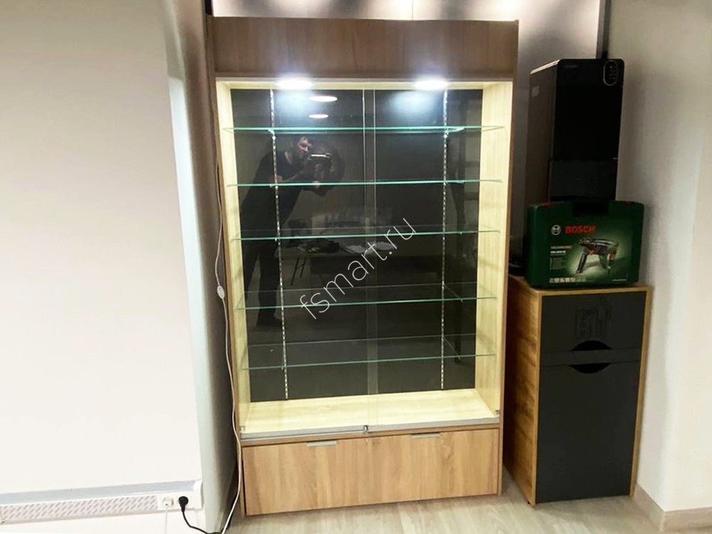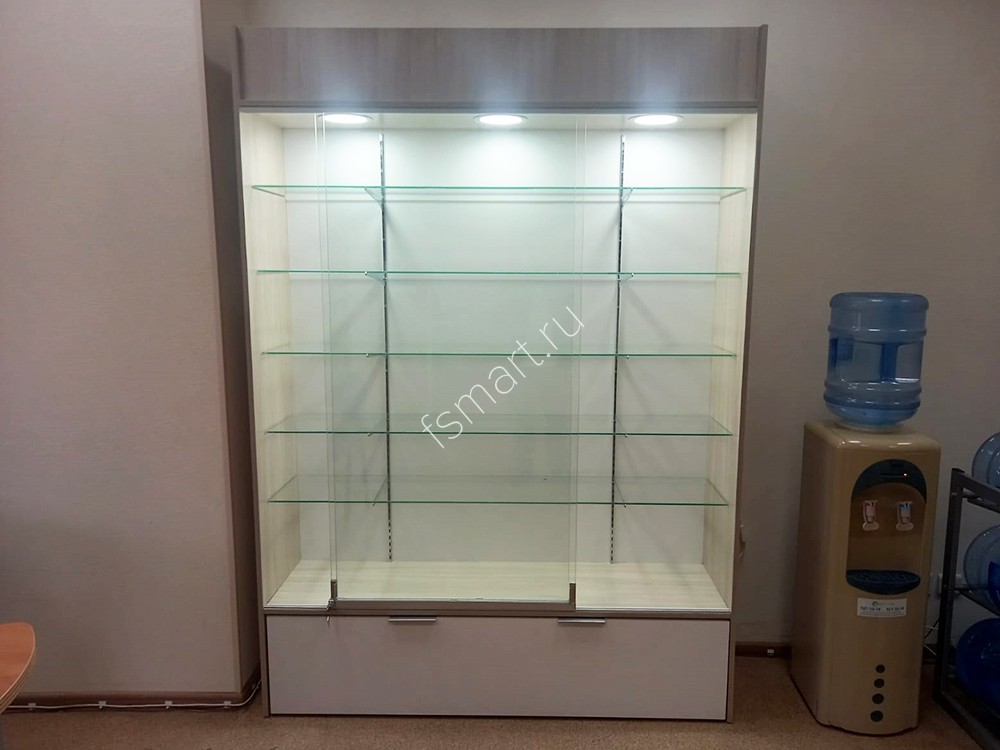 Закрытая витрина со стеклянными полками