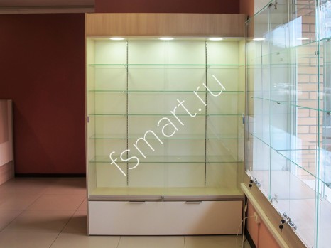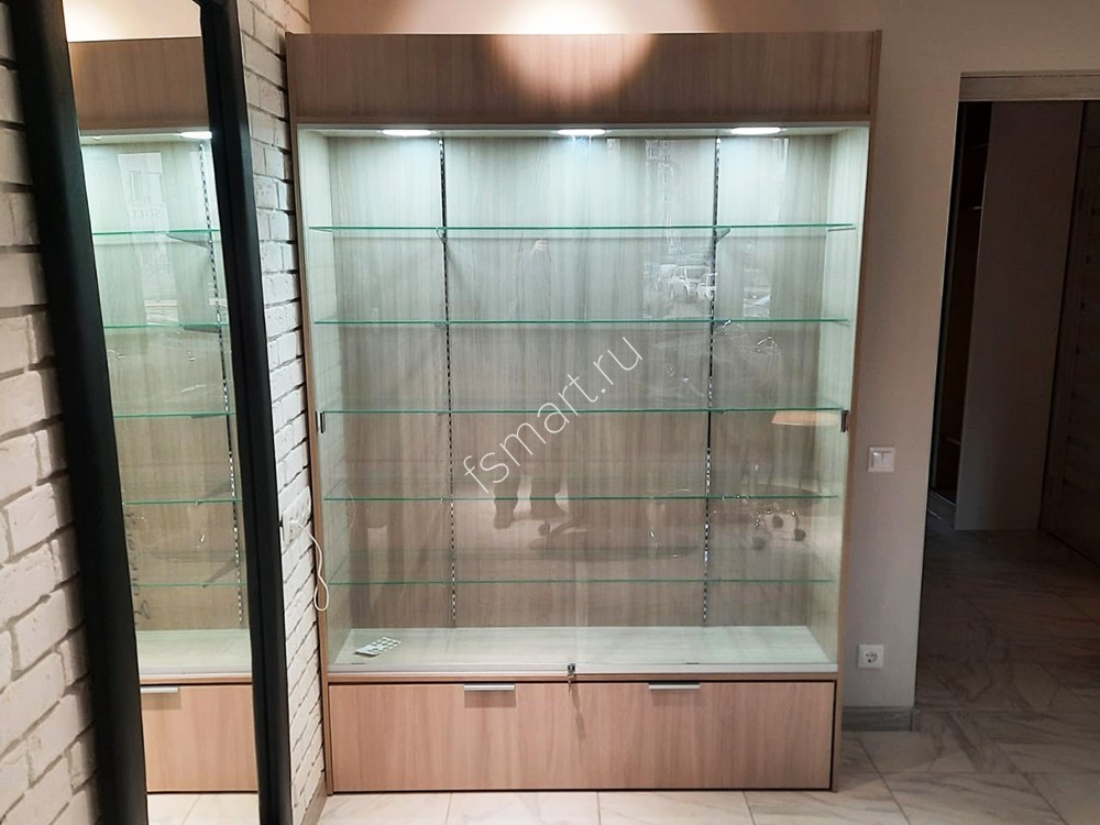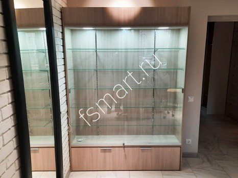 Закрытая витрина со стеклянными полками