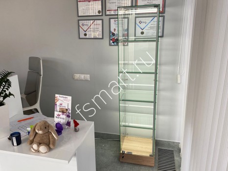 Витрина стеклянная с подсветкой стаканчик для магазина