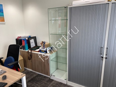 Витрина стеклянная стаканчик на подиуме из ДСП