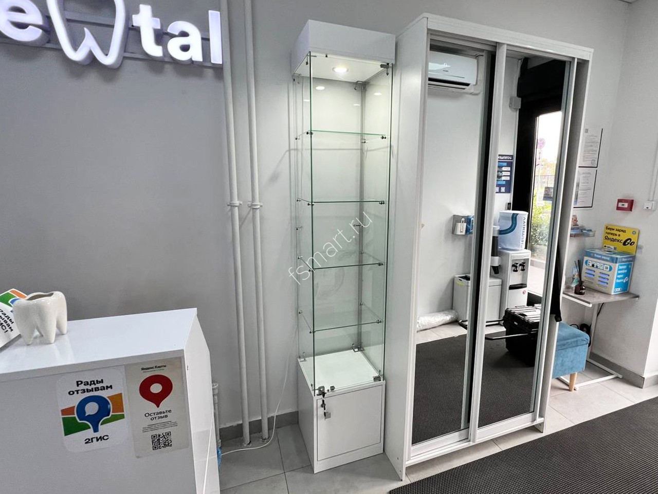 Витрина стеклянная с подсветкой стаканчик для магазина