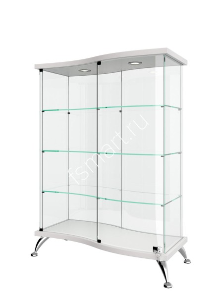 Витрина с подсветкой с гнутыми дверцей и боковиной низкая
