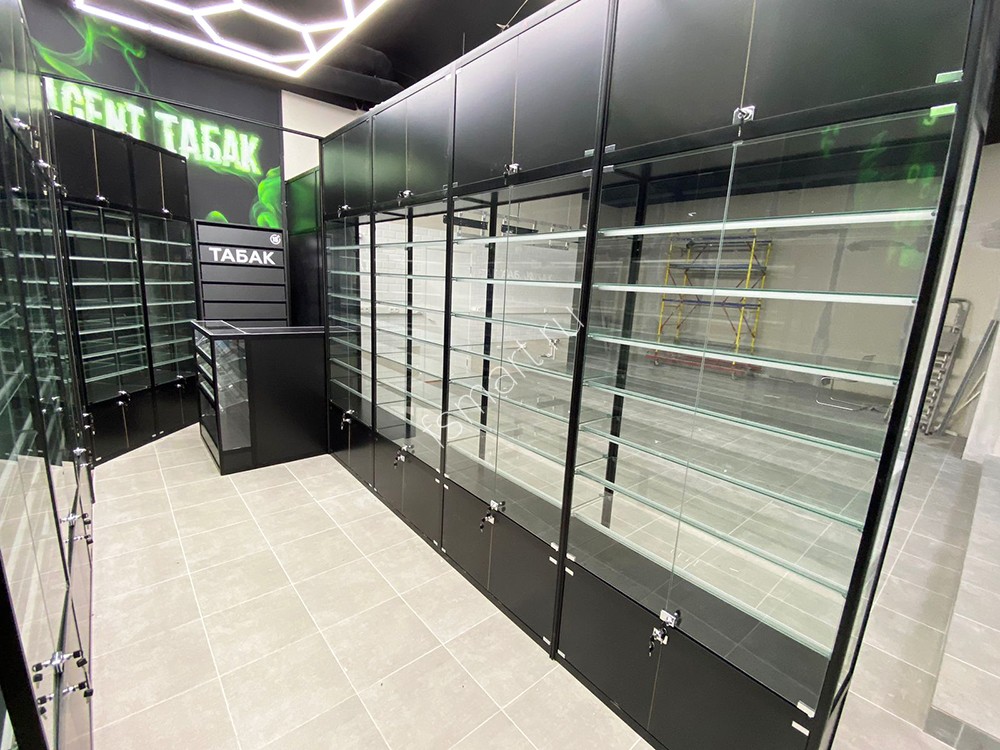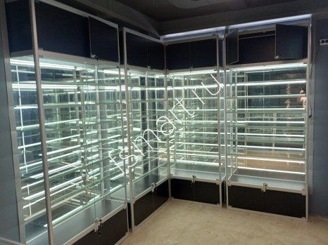 Витрина из алюминиевого профиля, стекла и ЛДСП