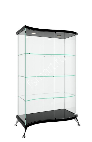 Витрина стеллаж с подсветкой с гнутыми дверцей и боковиной