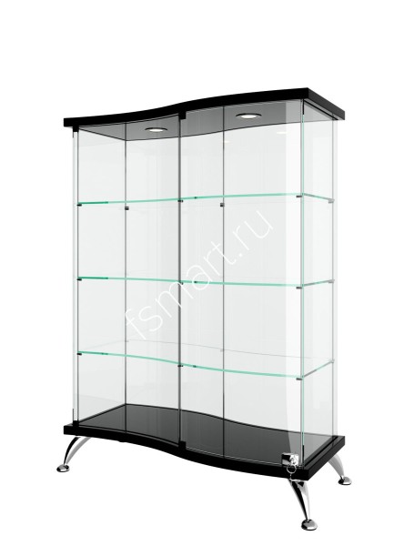 Витрина стеллаж с подсветкой с гнутыми дверцей и боковиной
