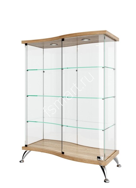 Витрина Полуволна стеклянная с подсветкой низкая