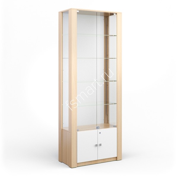Закрытая витрина со стеклянными полками