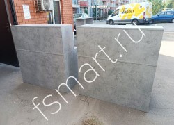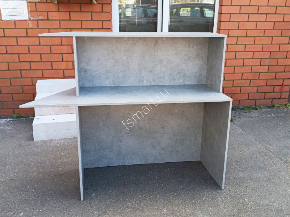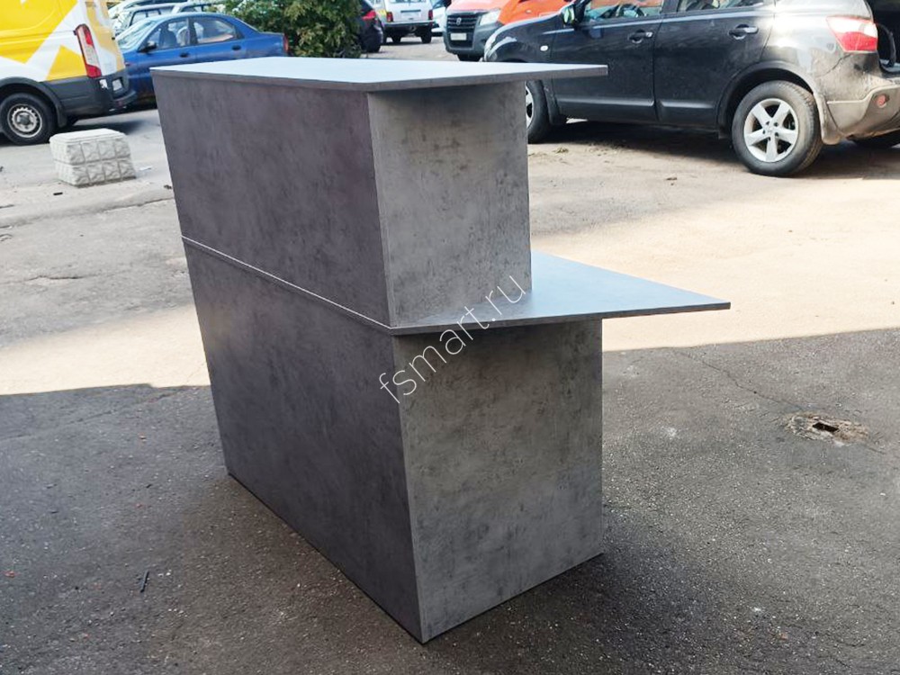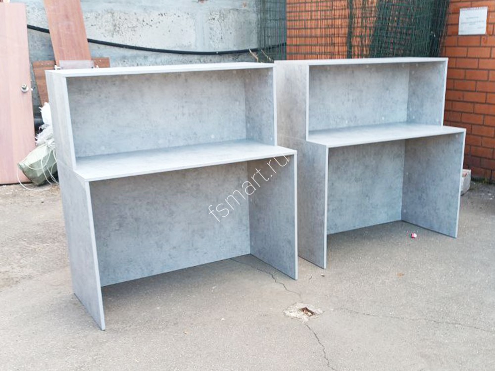 Торговые стойки изготовлены из ДСП. Окрашены в цвет "бетон". Размеры стойки: ширина 1500 мм, глубина 600 мм, высота 1100 мм.