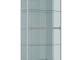 Витрина изготовлена из алюминиевого профиля. Оснащена четырьмя стеклянными полками. Фронтальное остекление отсутствует. Верх витрины сделан из стекла, низ выполнен из ДСП.