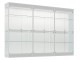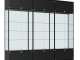 Витрины изготовлены из алюминиевого профиля, стекла и ДСП. Оснащены стеклянными полками. В верхней части расположены накопители. Высота витрин составляет 2600 мм. Глубина полок 400 мм.